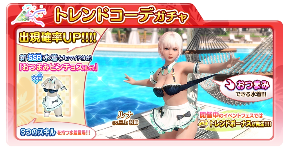 「DOAXVV」,一部を“おつまみ”できるSSR水着「おつまみピンチョス(ルナ)」が登場