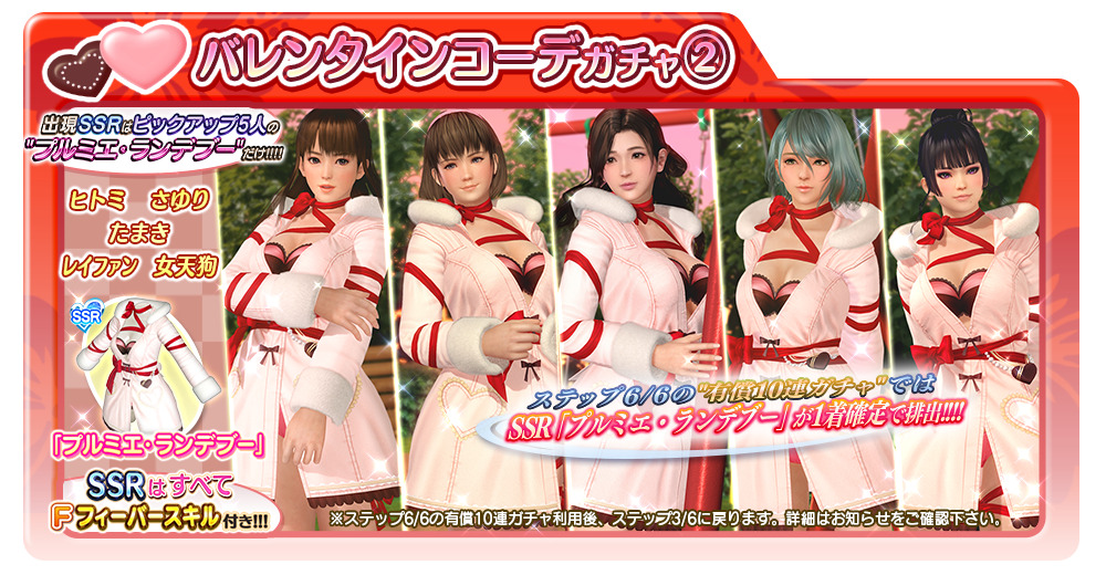 「DOAXVV」,最大で140連分が無料のバレンタインコーデガチャが開始。2月23日の公式番組は,野中 藍さんと高野麻里佳さんがゲスト