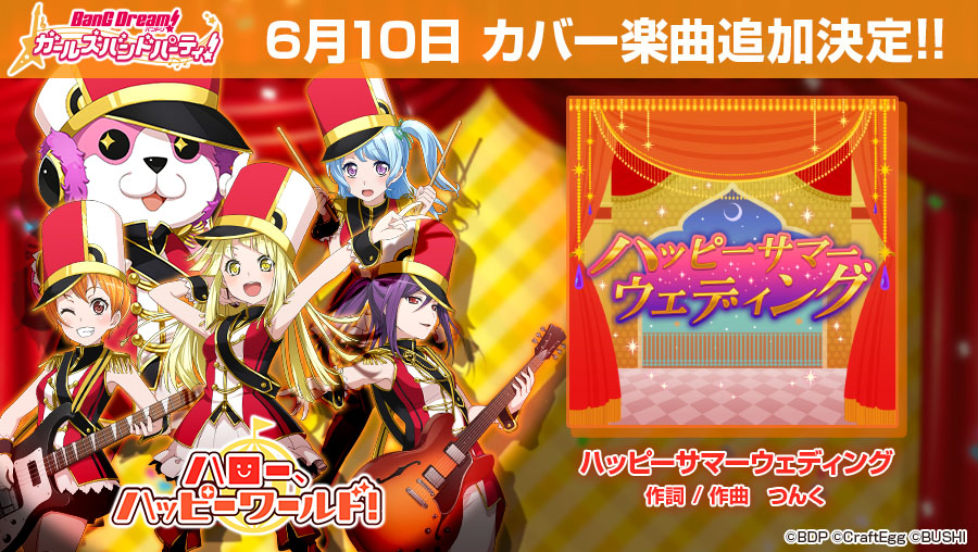 「バンドリ!ガルパ」,6月10日に新たなカバー曲「ハッピーサマーウェディング」を追加。「紅蓮の弓矢」「great escape」のカバーも実装予定
