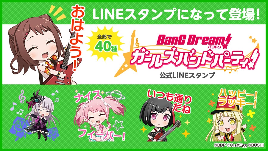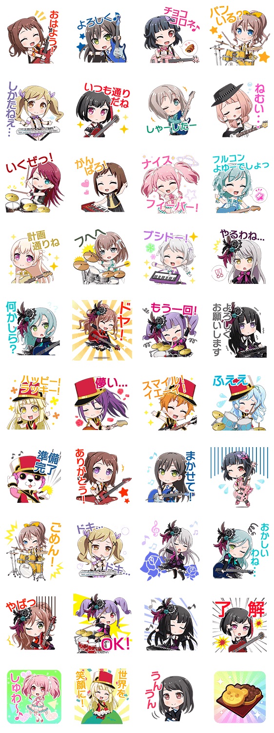 「バンドリ! ガールズバンドパーティ!」のLINEスタンプが本日発売。「チョココロネ♪」など40種類