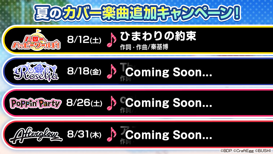 「バンドリ! ガールズバンドパーティ!」に楽曲「ひまわりの約束」が追加