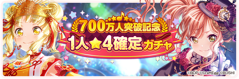 「バンドリ!ガルパ」,7月24日15:00より「700万人突破記念★4 確定ガチャ」を開催