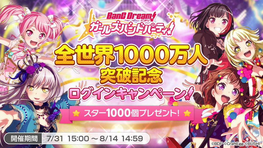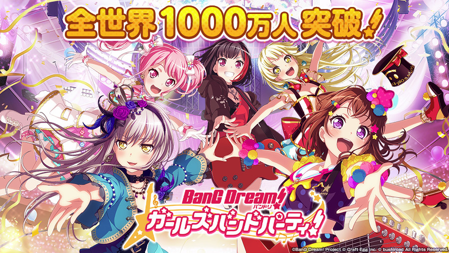 「バンドリ!ガルパ!」,全世界の合計ユーザー数が1000万人を突破