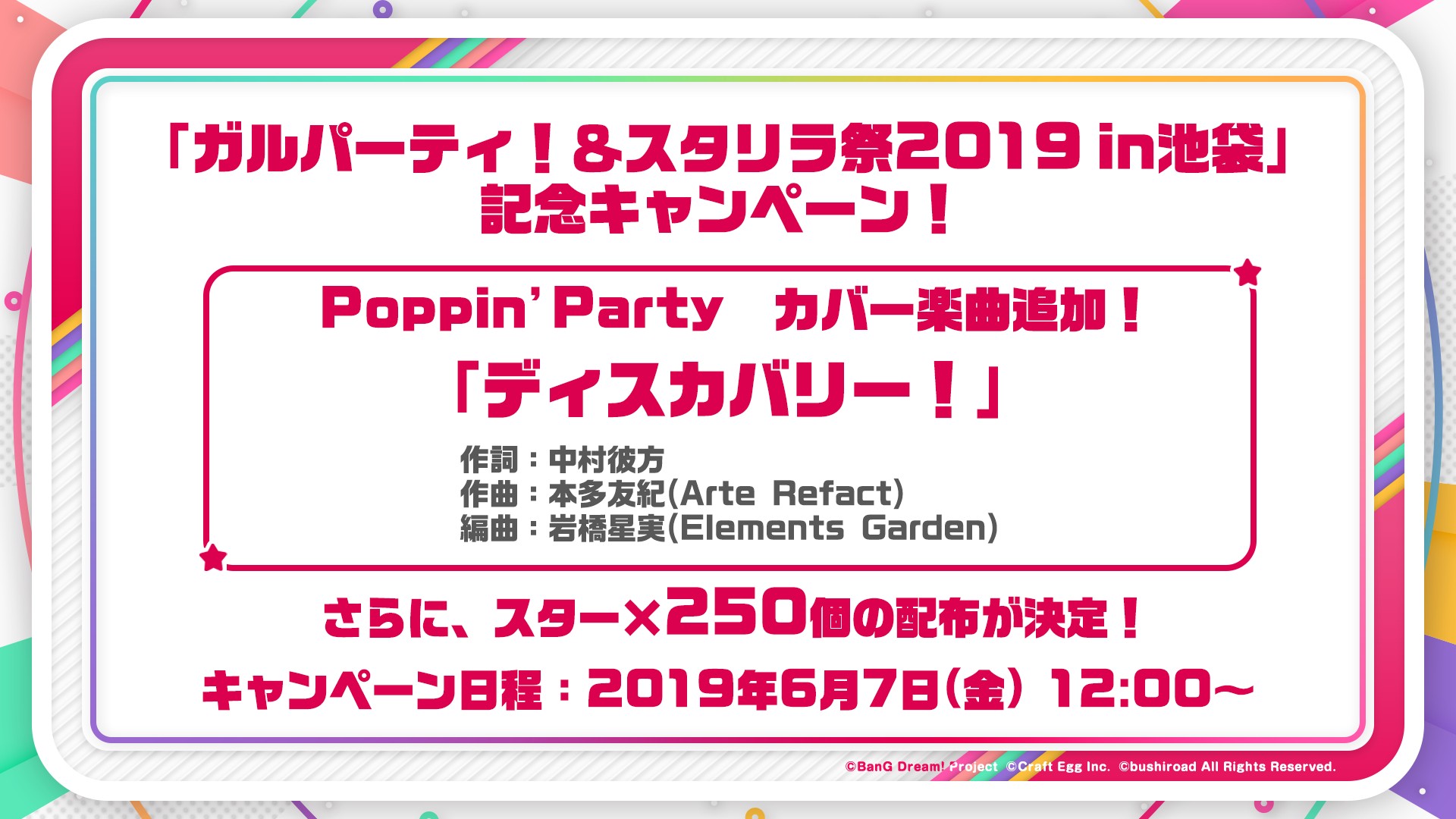 「バンドリ!」,“ガルパーティ!&スタリラ祭2019 in池袋”の開催を記念したキャンペーンを6月7日から実施