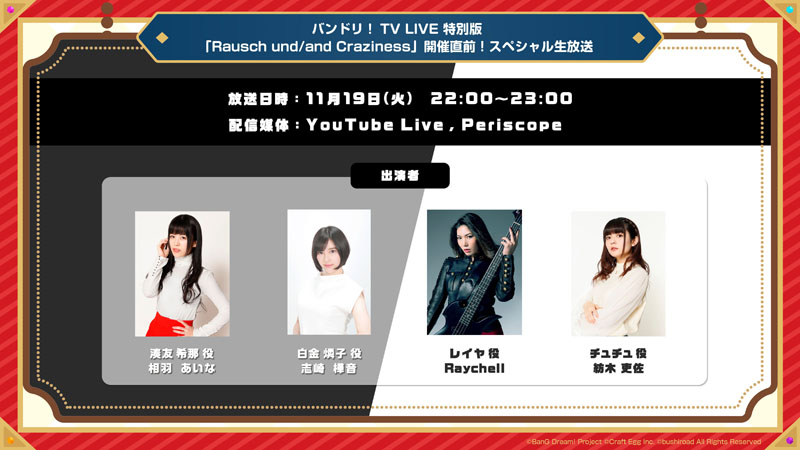 「バンドリ!」,「Rausch und/and Craziness」前日祭の詳細を公開