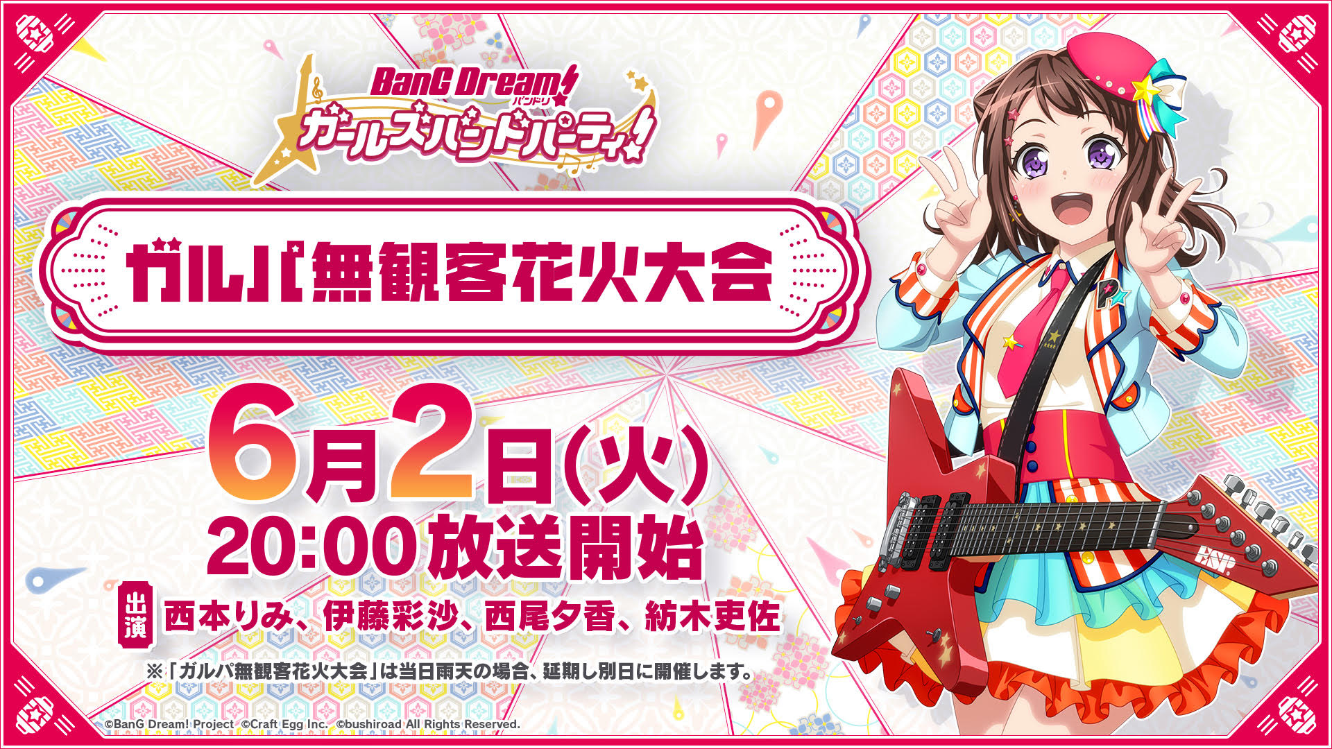 「バンドリ!」,「ガルパ無観客花火大会」を6月2日に開催。西本りみさんや伊藤彩沙さんらも出演