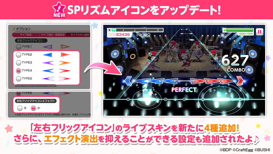 「バンドリ! ガールズバンドパーティ!」のSPリズムアイコンがアップデート。左右フリックアイコンのライブスキンが4種追加