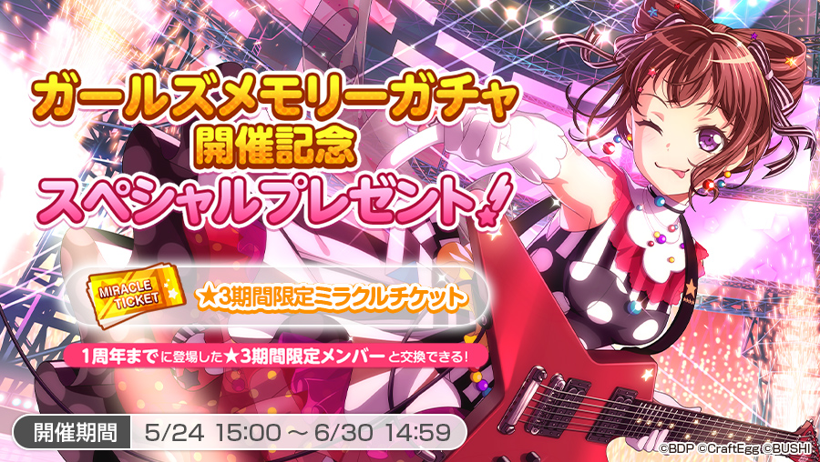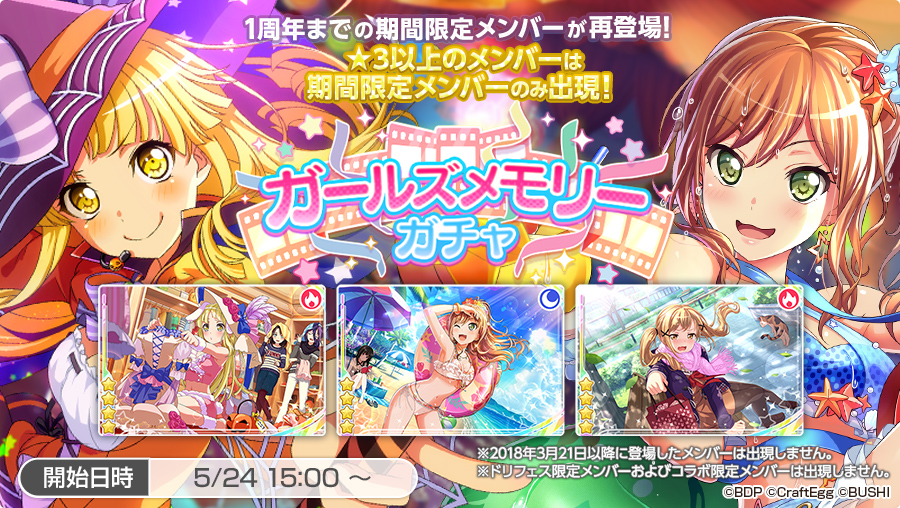 「バンドリ!」,期間限定メンバー再登場の“ガールズメモリーガチャ”を開催。★3チケットプレゼントも