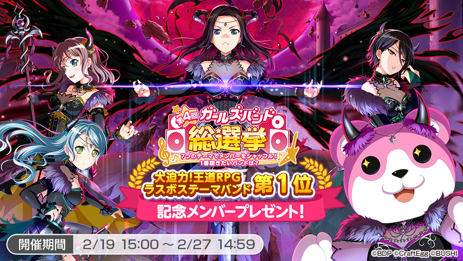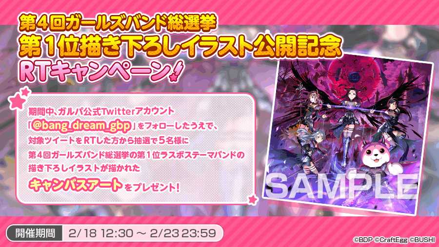 「バンドリ!ガルパ」, 第4回総選挙1位のシャッフルバンドのアプリ内プレゼント企画が2月19日に開催に