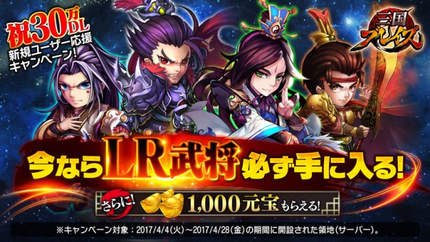 「三国ブレイズ」でSSR武将などを入手できる30万DL突破記念キャンペーンが開催