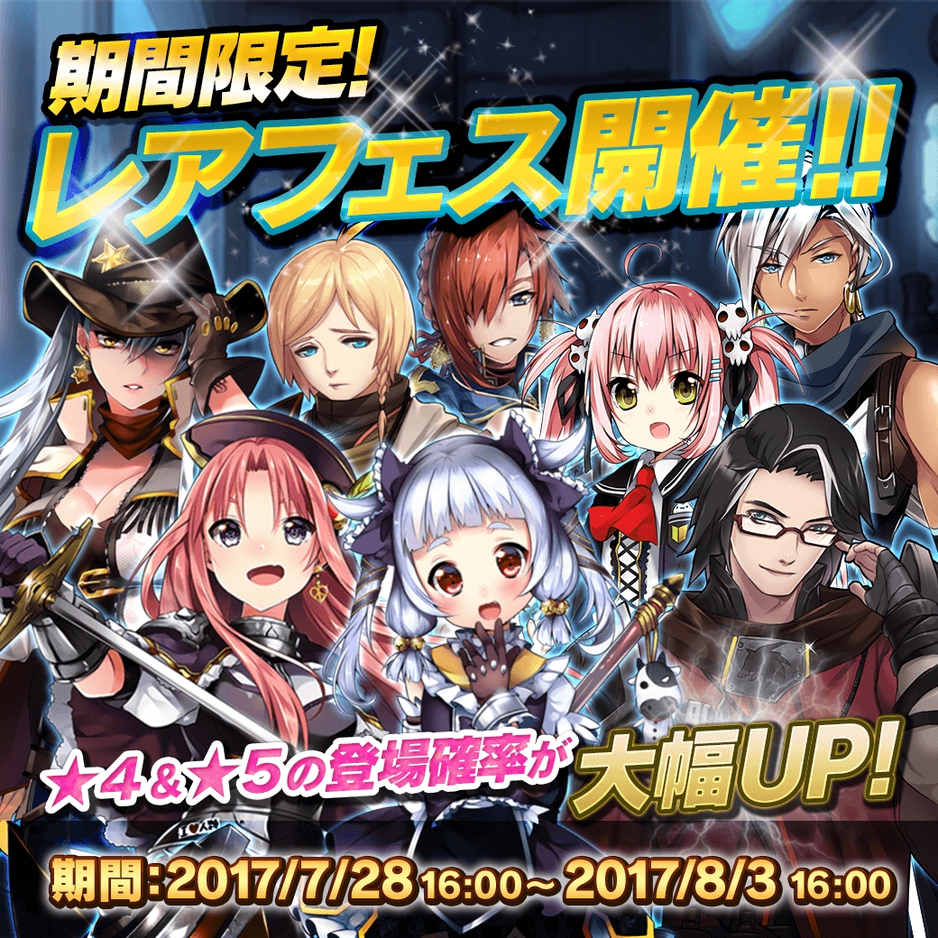 「メテオジーン」★4&★5のキャラの登場確率が大幅にUPする「レアフェス」を実施