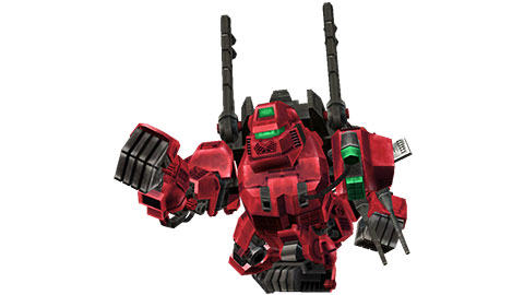 アイアンコングをチューンアップし,機動力と戦闘力を強化させたゾイド。ファイター適性が高く,対小型ゾイド兵器を使用しなくとも小型ゾイドを退けやすい。その赤い装甲から“ブラッディコング”の異名を持つ。