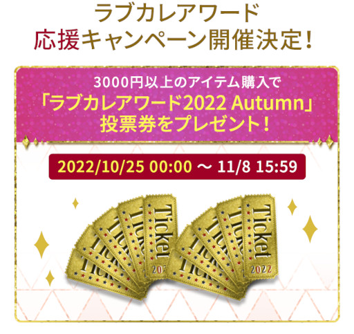 「ボルパス」では、 3,000円(税込)以上のアイテムを購入すると、 「ラブカレアワード2022 Autumn」の投票券がもらえるキャンペーンを実施中!