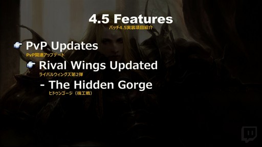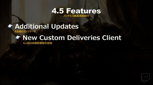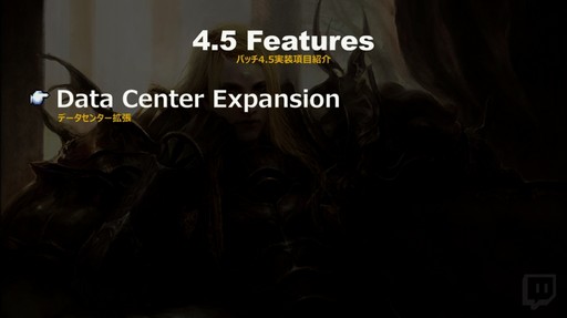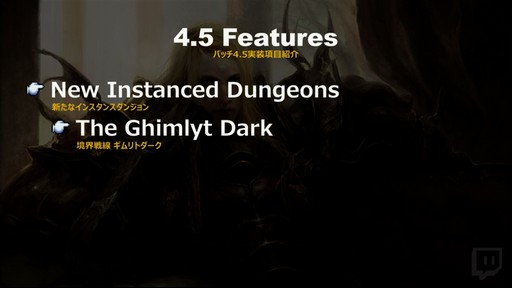 そして,パッチ4.5が2回に分けてリリースされることも明かされた。Part1は2019年1月上旬,Part2は2019年3月下旬に実装される予定で,「メインシナリオが恐ろしく大変なことになるので,覚悟を持って遊んでほしい」と吉田氏は述べた。