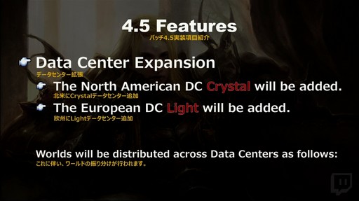 データセンター拡張に関しては,北米にCrystalデータセンター,欧州にLightデータセンターが追加され,これに伴うワールド間の振り分けが行われる。振り分け内容は以下のとおりだ。