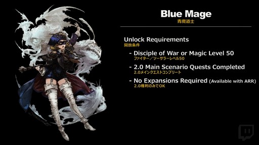 青魔道士の開放条件は,ファイター/ソーサラーレベル50,2.0メインクエストコンプリートで,2.0権利のみでも問題ない。