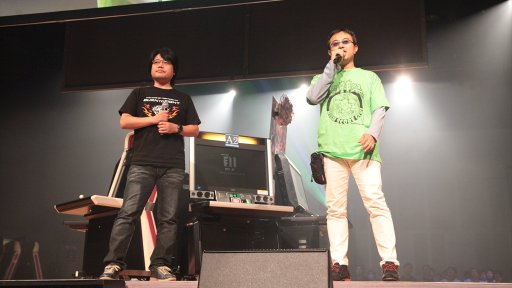 登壇したSNKプレイモアの「THE KING OF FIGHTERS XIV」プロデューサー・小田泰之氏と,タイトーのNESiCAxLiveプロデューサー・菊池氏