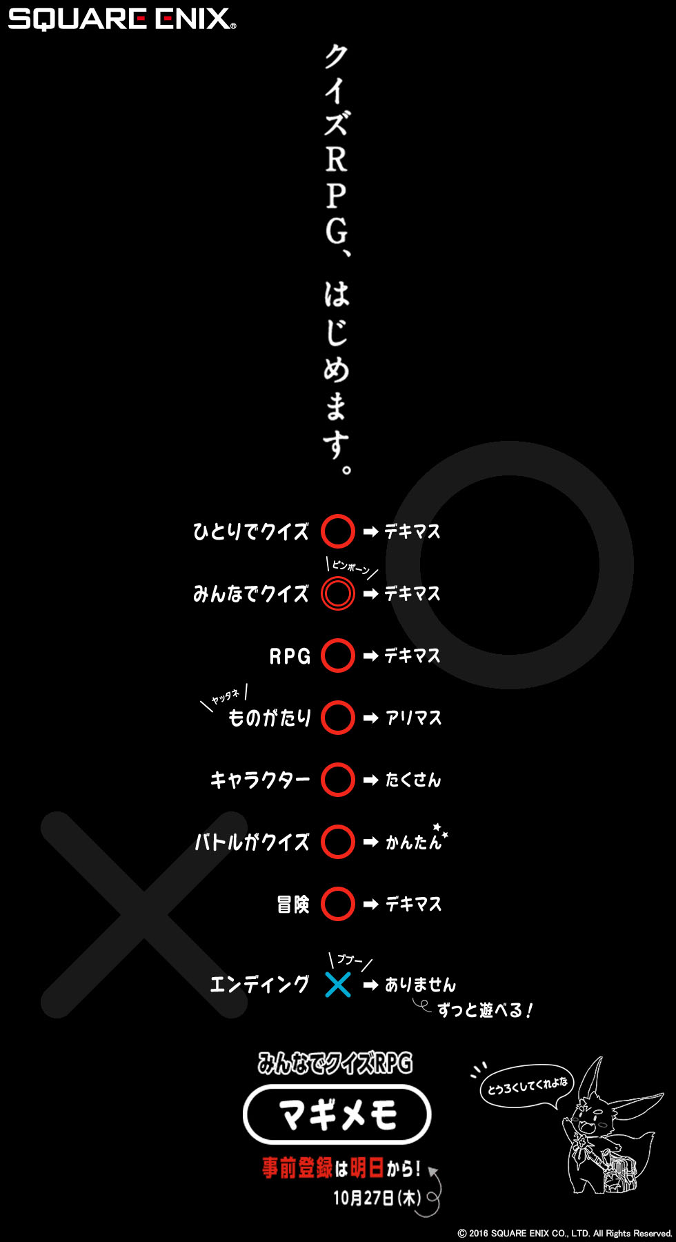 スクエニが新作スマホゲーム「協力クイズRPG マギメモ」のティザーサイトをオープン。10月27日より事前登録を実施