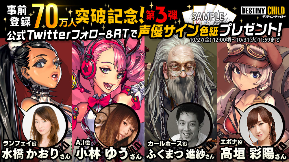 「デスティニーチャイルド」,サイン入り色紙が抽選で当たるキャンペーン