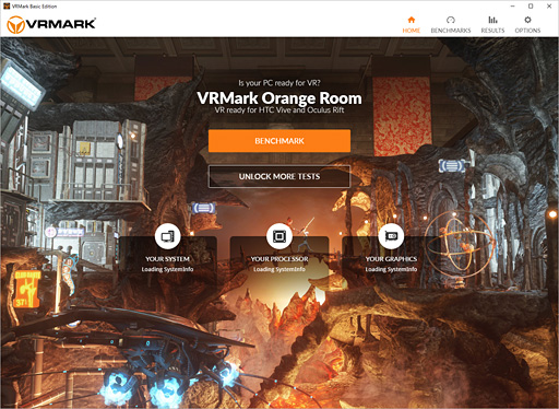 VRMarkは3DMarkと比べてシンプルなベンチマークということもあり,インストールやテストの実行はとても簡単だ。