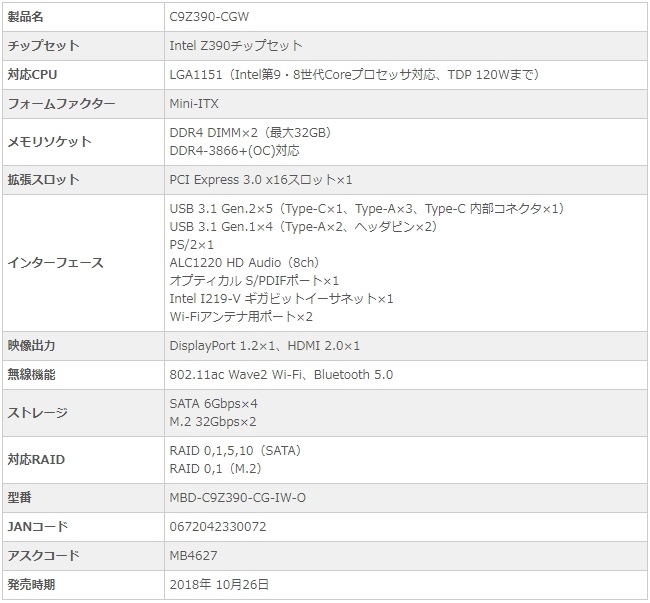 Super OブランドのZ390マザーボードが発売。ATXが2モデル,Mini-ITXが1モデル