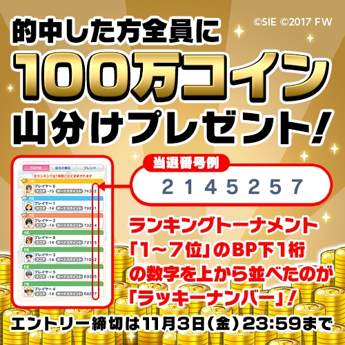 「みんゴル」,7桁の数字を当てると最大100万コインが当たるキャンペーンが開催