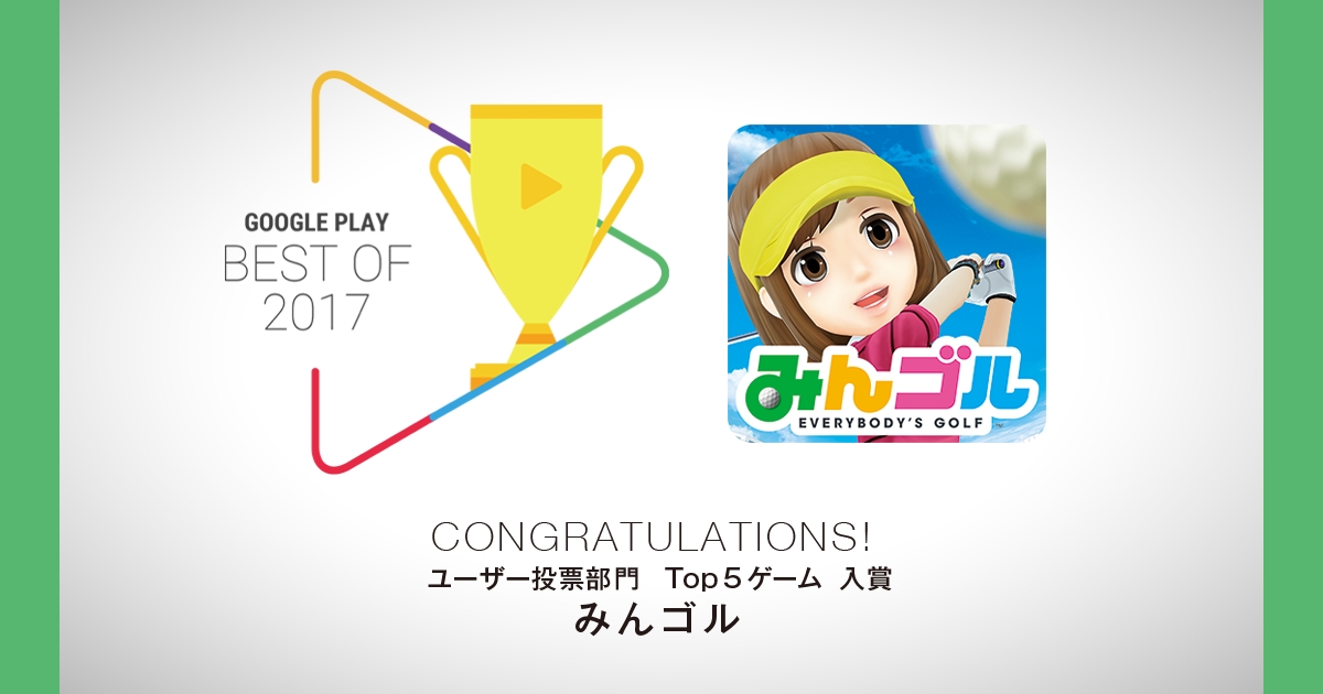 「みんゴル」,Google Playの「Best of 2017」2部門で入賞