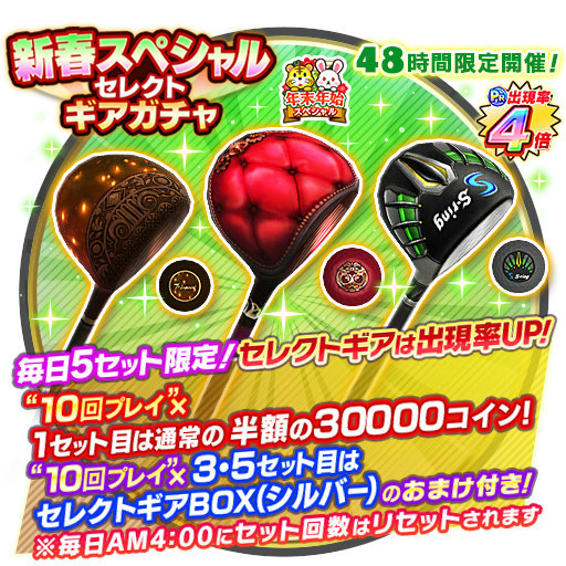 「みんゴル」,48時間限定の新春セレクトギアガチャを開催