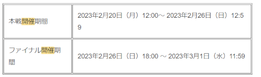 開催期間:2023年2月11日(土)12:00 〜 2023年3月1日(水)3:59