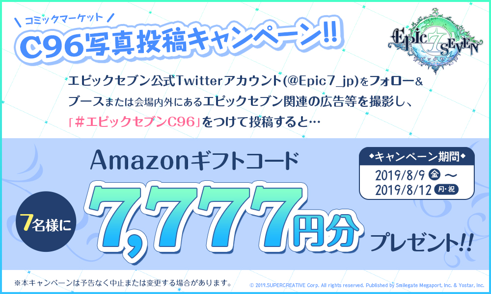 「Epic Seven」が「コミックマーケット96」に出展。Amazonギフトコードが抽選で当たる「C96写真投稿キャンペーン」を8月9日より開催