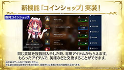 「8.サンドラ遺跡」の実装も明らかにされた。コインショップについて補足すると,同じ英雄を複数回入手したときにもらえる専用アイテムを集めると,英雄や装飾品などと交換できる機能になる。