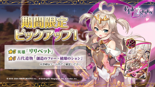 水瀬いのりさん演じる英雄「リリベット」や古代遺物「創造のフォー・破壊のション」が期間限定召喚でピックアップ中!