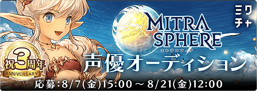 「ミトラスフィア」が3周年。ゲーム内のほか,声優オーディションなどゲーム外での企画も順次スタート