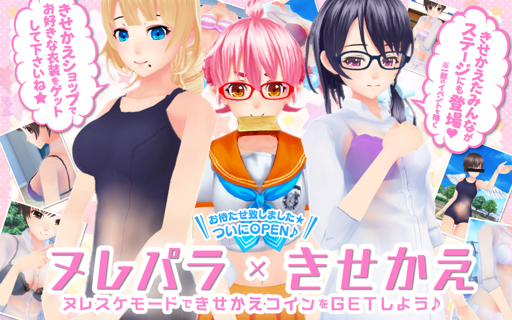 「ヌレスケパラダイス」,衣装などでヒロインをコーディネートできる「きせかえモード」が実装。“濡らし”に集中できる「ヌレスケモード」も