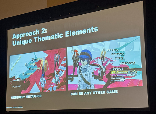 同セッションでは,本作のUIデザインを担当したスタジオ・ゼロのイセコウジ氏が登壇し,メタファーにおけるUIの役割やアートスタイルでのアプローチ,開発中に直面した課題から,ペルソナシリーズとの明確な差別化をどのようにして図ったのかまで語られた。