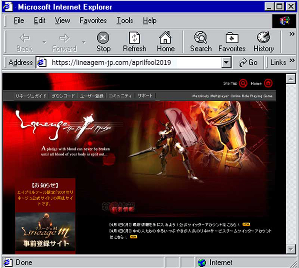 「Lineage M」の公式サイトが昔懐かしいデザインに。2001年当時のPC版「リネージュ」公式サイトを模した形で限定復刻