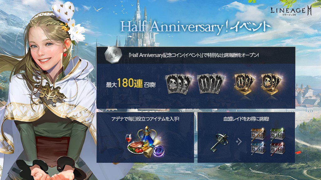 「リネージュ2M」のリリース半年を記念したイベントが開催。最大180連分の召喚が可能