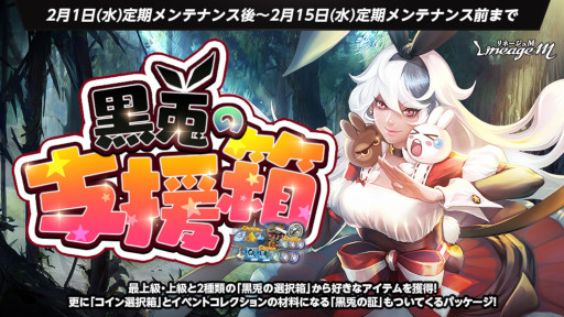 PCオンラインRPG「リネージュ」のモバイル版タイトル『Lineage M(以下、 リネージュM)』のサービス、 運営をしているエヌ・シー・ジャパン株式会社(東京都港区、 代表取締役:金 澤憲(キム テクホン) 以下、 エヌシージャパン)は、 2023年2月1日(水)にバレンタインイベント「Sweet Valentine リズのチョコケーキ捕獲大作戦」の開催、 「黒兎の支援箱」を含む新たなパッケージの登場をお知らせします。