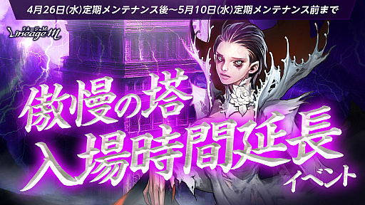 また,「傲慢の塔入場時間延長イベント」は,レベル68以上で入場できるワールドダンジョン「傲慢と信念の塔」の入場時間が,いつもの7時間から10時間に延長されるという内容だ。期間はどちらも5月10日まで。