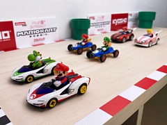 京商は本日,任天堂の「マリオカート」をモチーフにした「マリオカート プルバック」(全6種類)を,全国のファミリーマート(一部店舗を除く)にて2023年4月20日より順次発売すると発表した。マリオ,ルイージ,ピーチ姫,ヨッシーのカートが,引いて離すと走り出すプルバックカーとなって登場する。