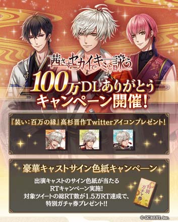 「アカセカ」100万DL突破を記念して,4つの豪華キャンペーンを開催