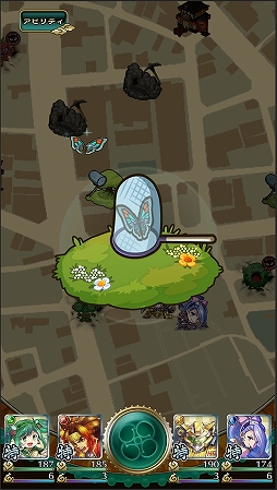 ゲーム内マップに出現するキャラとの会話やバトルは,タップだけで進行できる仕組みなので,片手プレイも問題なく行える。バトルに関してはオートモードも選べるため,バトル目的なら画面を随時チェックしなくてよい。アラートやバイブで接近を知らせる機能が搭載されており,手軽さの面もしっかりとカバーされている。