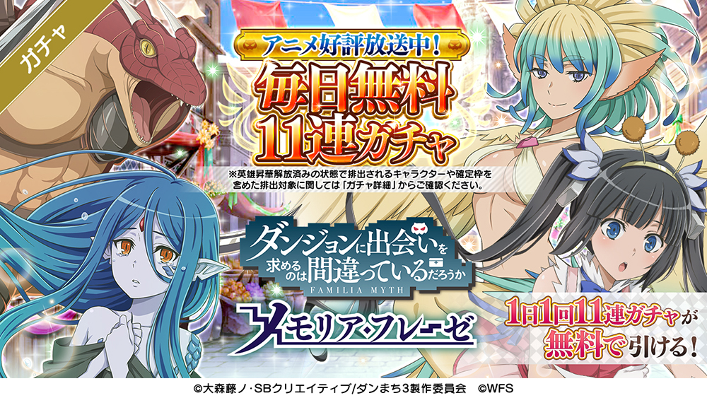 「ダンメモ」で毎日無料11連ガチャを含むTVアニメ「ダンまちIII」放送記念キャンペーンが開催
