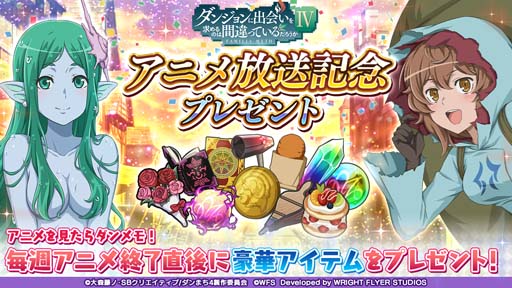 TVアニメ「ダンまちⅣ」最終話の放送記念プレゼントはなんと「虹水晶400個」!期間中1回、初回ログインで獲得できます。獲得期間は「3月30日(木)23:29」までとなりますのでぜひログインしてお受け取りください!