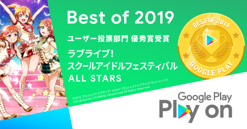 「スクスタ」,Google「ベスト オブ 2019」ユーザー投票部門優秀賞を記念したキャンペーンは12月31日まで