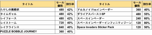 本セールの目玉は、初セールとなる“伝説のクソゲー”「たけしの挑戦状」と、元祖バブルシューターパズル「PUZZLE BOBBLE JOURNEY」。他にもシューティングゲームのレイシリーズ三部作や、来年誕生40周年を迎えるスペースインベーダーシリーズなど、計11タイトルがセール対象。年末年始に楽しめるアプリを最大80%オフでお買い求めいただけます!