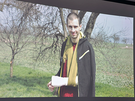 Ilavsky氏がゲームジャムで「Chameleon Run」を作った背景には,文字どおり「事故」が絡んでいる。ゲームジャムの直前にIlavsky氏は左手を骨折してしまった。つまり彼は,40時間という時間制限だけでなく,片手でゲームを作るというハンデまで負ってしまった。