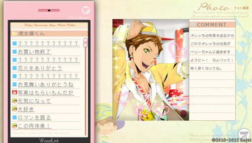 彼から甘く囁かれる「愛の告白耐久バトル」。彼の甘い告白に耐えきれればご褒美が!?負けるとなんと、彼と添い寝に!さらに、自己紹介からシチュエーション別のメッセージまで彼の甘い囁きが聴ける特別ボイスや彼からの写真付きメールが届いたり、本編の途中で集めた写真を後から閲覧できるなど楽しめる要素が盛り沢山。