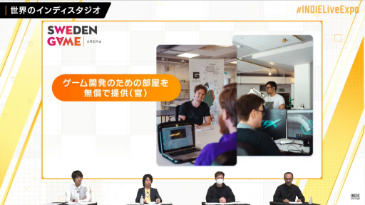 地元産業界が,インディーズゲーム開発者にマーケティング技術をレクチャーしてくれる。具体的には,投資家に対するプレゼンの練習をさせてくれたり,投資家を紹介してくれたり,そして作ったゲームでいかに収益を上げるかといったところについて相談に乗ってくれたりする。こうしたサービスは通常なら料金が必要になるものの,「Sweden Game Arena」ではなんと無料。ただし,作ったゲームをどうマネタイズするかを数字で示すという視点が求められるという。