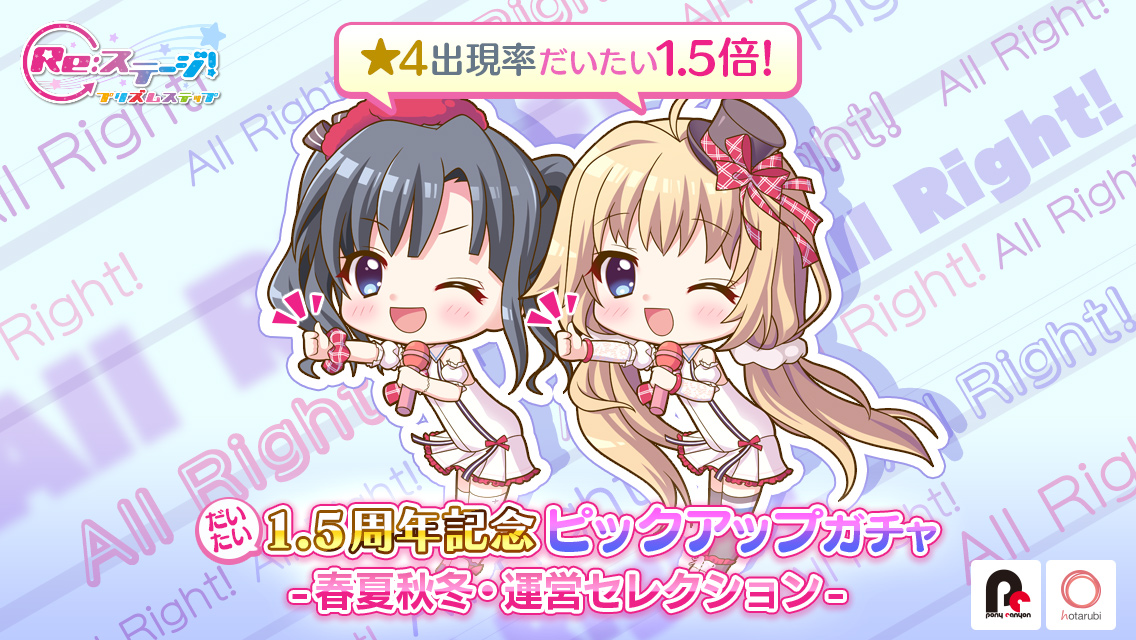 「Re:ステージ!プリズムステップ」,だいたい1.5周年を記念した「☆4出現率”だいたい”1.5倍ガチャ」開催